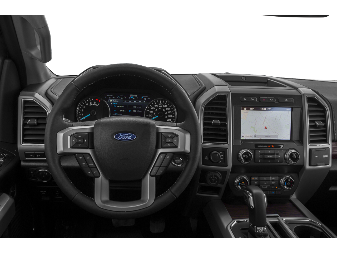 EQUIPMENT GROUP 502A LUXURY Rain-Sensing Wipers, Power Tilt/Telescoping Steering Column w/Memory, Lariat Bed Utility Package, BoxLink w/4 premium locking cleats and LED box lighting, Windshield Wiper De-Icer, Remote Start System w/Remote Tailgate Release, Lariat Chrome Appearance Package, 2 chrome front tow hooks, Single-Tip Chrome Exhaust, Chrome Angular Step Bars, Chrome Door & Tailgate Handles w/Body-Color Bezel, Wheels: 18 Chrome-Like PVD, Chrome 2-Bar Grille w/4 Minor Bars, painted silver surround and background mesh, Chrome Skull Caps on Exterior Mirrors, LED Sideview Mirror Spotlights, high-intensity LED security approach lamps, Radio: B&O Sound System by Bang & Olufsen, HD Radio, SiriusXM radio, 10 speakers and subwoofer, Note: When ordered w/voice-activated navigation system, TWIN PANEL MOONROOF, TRAILER TOW PACKAGE Towing capability up to 11,300 lbs, Engine Oil Cooler, Pro Trailer Backup Assist, Upgraded Front Stabilizer Bar, VOICE-ACTIVATED TOUCHSCREEN NAVIGATION pinch-to-zoom capability, SiriusXM Traffic and Travel Link, Note: SiriusXM Traffic and Travel Link includes a, SiriusXM Traffic and Travel Link service is not available in Alaska or Hawaii, After your trial period ends, SiriusXM audio and data services each require a subscription sold separately, or as a package, by SiriusXM Radio Inc, See SiriusXM Customer Agreement for complete terms at www.siriusxm.com, All fees and programming subject to change, Trial subscriptions not available in Alaska and Hawaii, ELECTRONIC LOCKING W/3.55 AXLE RATIO, TAILGATE STEP W/TAILGATE LIFT ASSIST, LARIAT SPORT APPEARANCE PACKAGE unique interior finish, Box Side Decals, Single-Tip Chrome Exhaust, Wheels: 18 6-Spoke Machined-Aluminum, magnetic painted pockets, Accent-Color Angular Step Bars, 2-Bar Body-Color Grille w/4 Minor Bars, black surround and black mesh, Body-Color Front & Rear Bumpers, TRANSMISSION: ELECTRONIC 10-SPEED AUTOMATIC selectable drive modes: normal/tow-haul/snow-wet/EcoSelect/sport (STD). Ford LARIAT with Iconic Silver exterior and Black interior features a V6 Cylinder Engine with 325 HP at 5000 RPM*.
