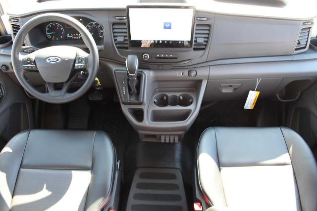 360-DEGREE CAMERA W/SPLIT VIEW front washer, Front, side and rear facing cameras allow the driver to toggle through different camera views via a button located on the instrument panel, Honeycomb Mesh Grille w/Chrome Surround, RADIO: AM/FM STEREO W/SYNC 4 12 multi-function display, Bluetooth®, dual USB ports, embedded voice recognition, connected navigation and 4 speakers (front), Electronic Air Temperature Control, DRIVER CONTROLLED FRONT/REAR AUX A/C & HEATER Heat is distributed from rear of front-passenger seat, A/C is distributed from the rear of van, EXTENDED LENGTH RUNNING BOARDS Covers the A-B pillar driver-side and A-C pillar passenger-side, BLIND SPOT ASSIST 1.0 Blind Spot Information System (BLIS) w/Cross-Traffic Alert and trailer coverage, Blind Spot Assist 1.0 combines Blind Spot Information System (BLIS) w/lane keeping aid to provide a visual warning and resistive steering torque to prevent a collision should an object be recognized in the vehicles blind spot while changing lanes, Short-Arm Pwr-Folding Heated Pwr Adjusting Mirrors, turn signals, REMOTE START, HEAVY-DUTY TRAILER TOW PACKAGE Deletes rear tow hook, 4/7 pin connector assembly and rear jumper and relay system for backup/B+/running lights, This package does not include a Trailer Brake Controller (TBC) (67D), Frame Mounted Hitch Receiver, Tow/Haul Mode w/Trailering Wiring Provisions, SIDE SENSING SYSTEM Works similar to the reverse sensing system, as it sounds a tone when the vehicle gets close to surrounding vehicles and other objects, Front Sensing System, Front Fog Lamps, Auxiliary lamps that are generally integrated into the front fascia and designed to help illuminate the roadway during poor visibility, FIXED REAR CARGO DOOR GLASS Rear-Window Defroster, Rearview Mirror, KEYLESS ENTRY KEYPAD, DARK PALAZZO GRAY VINYL BUCKET SEATS W/ARMRESTS 2-way manual driver seat and 2-way manual passenger seat, VEHICLE MAINTENANCE MONITOR engine hour meter, Depending on the engine, this feature will display engine hour meter, oil life, oil level and tire pressure status, TRANSMISSION: 10-SPD AUTOMATIC W/OD & SELECTSHIFT auxiliary transmission oil cooler (STD). Ford Transit Cargo Van with Agate Black exterior and Dark Palazzo Gray interior features a V6 Cylinder Engine with 275 HP at 6250 RPM*.